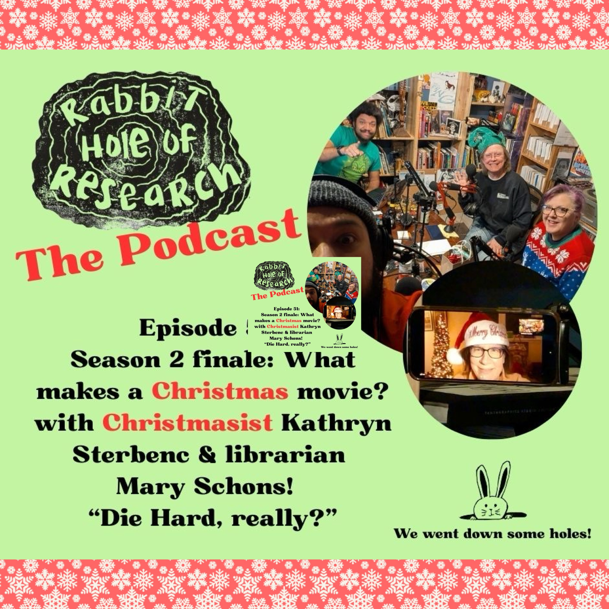 In this lively Season 2 finale of Rabbit Hole of Research, hosts Joe, Nick, and Georgia are joined by returning guest Mary Schons and Christmasist Kathryn “Kat” Sterbenc to do two things at once: look back at a season spent separating science from handwavium, and finally tackle the perennial holiday argument, Is Die Hard a Christmas movie?