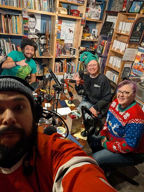Returning guest Mary Schons and first-time guest Kathryn “Kat” Sterbenc join the hosts, with Kat immediately establishing her authority as Chief Comfort and Joy Officer of Snowglobia.